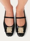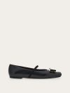 Inspired by a classic, this contemporary ballet flat features a super soft leather upper with ruffles at the pointed tip just like their namesake. The gros grain elastic across the upper duets with Vara bow held by the new Ferragamo buckle at the toe. Knurled rubber flexible sole.