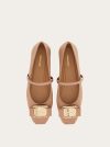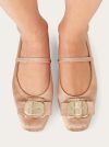 Soft and feminine, this new take on the ballet flat in exclusive satin is inspired by the classic dance shoe. At the tip, the new Vara buckle is framed by a series of crystals, through which is threaded the iconic bow. Flexible, ribbed rubber sole.