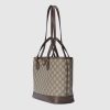 The Ophidia line is further elevated through new sizes and styles including variations with top handles as well as shoulder straps, allowing for versatile wear. The signature Double G hardware completes this beige and ebony GG Supreme design.