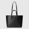 The Ophidia line is further elevated through new sizes and styles including variations with top handles as well as shoulder straps, allowing for versatile wear. The signature Double G hardware completes this black leather design.
