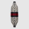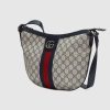 Mirroring the material's historic origins, GG Supreme is introduced in a timeless mix of blue and beige for Gucci Love Parade. The canvas has come to the front of each collection decade after decade to become a hallmark of the House. Here, the classic palette defines this Ophidia crossbody bag.