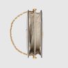 A heritage material from the archive, GG Supreme has been reimagined in Gucci Love Parade in different color combinations and combined with contemporary as well as classic styles. The Ophidia shoulder bag is presented in a beige and white variation of the signature material with a tonal trim. Originally a play on a ’30s design, the canvas speaks to the historical narrative that runs throughout the collection.