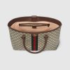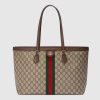 With recognizable design elements in a practical new shape, Ophidia new medium sized tote is trimmed with textured leather and topped with Double G hardware. Thanks to its long leather handles, the style can also be carried as a shoulder bag.
