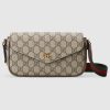 The world of Ophidia continues to evolve, incorporating new shapes and materials each season. Crafted from beige and ebony GG Supreme canvas, this mini bag is further enriched by the Double G hardware and a Web shoulder strap.
