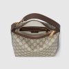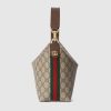 The world of Ophidia continues to evolve with new iterations for the Pre-Fall collection. This super mini shoulder bag is made of beige and ebony GG Supreme canvas and has a semi-detachable shoulder strap. The House iconic Web stripe completes the piece along the sides.