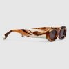 • Shiny brown and ivory tortoiseshell acetate temples with Gucci logo