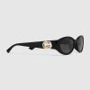 Inspired by the summer spirit and beach clubs on the Italian coast, this item is part of Gucci Lido. The Cruise 2024 eyewear collection successfully combines the coveted silhouettes of bygone decades with a contemporary logo feel. Here, a black oval injection frame pairs with an Interlocking G cut out detail.