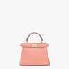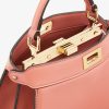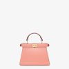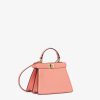 Iconic small Peekaboo ISeeU bag, the epitome of Fendi craftsmanship and creativity. A timeless icon, the Peekaboo was created in 2009. Like the children’s game it takes its name from, peek-a-boo, the bag plays with the beauty showcased on the outside and that concealed on the inside. Made of soft pink padded nappa leather. Featuring interiors lined in pink nappa leather, internal compartments separated by a stiff partition and an inner pocket. Gold-finish bar, closure and metalware. Decorated with the iconic twist lock on both sides. The bag can be carried by hand or worn either on the shoulder or cross-body thanks to the handle and adjustable, detachable shoulder strap. Made in Italy