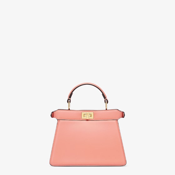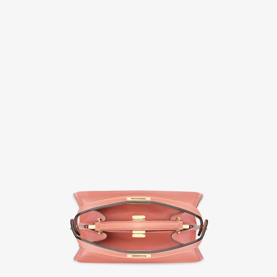 Iconic small Peekaboo ISeeU bag, the epitome of Fendi craftsmanship and creativity. A timeless icon, the Peekaboo was created in 2009. Like the children’s game it takes its name from, peek-a-boo, the bag plays with the beauty showcased on the outside and that concealed on the inside. Made of soft pink padded nappa leather. Featuring interiors lined in pink nappa leather, internal compartments separated by a stiff partition and an inner pocket. Gold-finish bar, closure and metalware. Decorated with the iconic twist lock on both sides. The bag can be carried by hand or worn either on the shoulder or cross-body thanks to the handle and adjustable, detachable shoulder strap. Made in Italy
