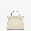 Small iconic Peekaboo ISeeU bag made with 556 tone on tone hand-sewn macro topstitches, an emblem of the iconic Selleria workmanship handed down through generations of Fendi artisans since 1925.