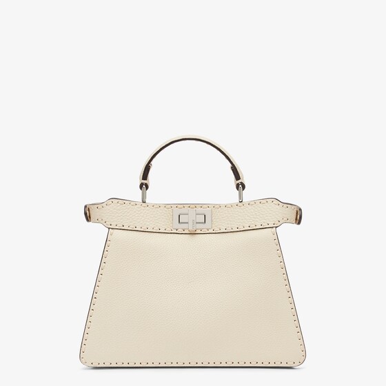 Small iconic Peekaboo ISeeU bag made with 556 tone on tone hand-sewn macro topstitches, an emblem of the iconic Selleria workmanship handed down through generations of Fendi artisans since 1925.