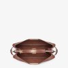 Leather covered aluminum bar to lighten the weight of the bag, gold-finish clasp and metalware.