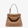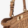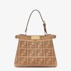 Made of coffee-colored Cuoio Romano leather and calfskin with a characteristic natural grain produced with a metal-free tanning process. The main part of the bag is enhanced with hand-crafted interlacing that creates the iconic FF motif.