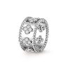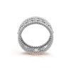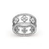 Perlée clovers ring, rhodium plated 18K white gold, round diamonds, medium model; diamond quality DEF, IF to VVS.