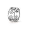 Perlée clovers ring, rhodium plated 18K white gold, round diamonds, small model; diamond quality DEF, IF to VVS.