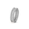 Perlée diamonds ring, 1 row, rhodium plated 18K white gold, round diamonds; diamond quality DEF, IF to VVS