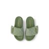 The Pool Pillow flat comfort mule is revisited in Monogram jacquard with a faded, vintage look. At once on-trend and easy to wear, this model is distinguished by its padded, pillow-like front strap, which is adjusted with velcro and signed with a Louis Vuitton-embossed leather label. A comfortable anatomic footbed and lightweight micro outsole complete this design.
