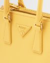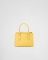 Production of the Prada Galleria bag, composed of 83 pieces, is an authentic fusion between industrial precision and the refined accuracy of craftsmanship that can only be performed by hand. The design is clean and elegant yet innately pragmatic, an aesthetic language blending form and function that combines history and modernity. Originating the definition of "timeless", the Galleria bag has become a hallmark of Prada's identity in the twenty-first century. The accessory, presented in the mini version, is made of iconic Saffiano leather that was patented by the founder of the brand and features a crosshatch texture and waxed finish.