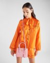Production of the Prada Galleria bag, composed of 83 pieces, is an authentic fusion between industrial precision and the refined accuracy of craftsmanship that can only be performed by hand. The design is clean and elegant yet innately pragmatic, an aesthetic language blending form and function that combines history and modernity. Originating the definition of “timeless”, the Galleria bag has become a hallmark of Prada’s identity in the twenty-first century. The accessory, presented in the mini version, is made of iconic Saffiano leather that was patented by the founder of the brand and features a crosshatch texture and waxed finish.