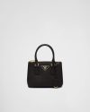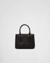 Production of the Prada Galleria bag, composed of 83 pieces, is an authentic fusion between industrial precision and the refined accuracy of craftsmanship that can only be performed by hand. The design is clean and elegant yet innately pragmatic, an aesthetic language blending form and function that combines history and modernity. Originating the definition of "timeless", the Galleria bag has become a hallmark of Prada's identity in the twenty-first century. The accessory, presented in the mini version, is made of iconic Saffiano leather that was patented by the founder of the brand and features a crosshatch texture and waxed finish.