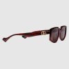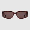 Sleek rectangular frames puts a twist on any ensemble, and the sculpted silhouette of this tortoiseshell injection frame adds visual interest. A gold-toned metal Double G detail adorns the temples, complete with solid brown lens.
