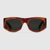 • Shiny brown tortoiseshell acetate temples with Gucci logo