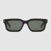 The Pre-Fall 2024 eyewear collection successfully combines the coveted silhouettes of bygone decades with a contemporary logo feel. Here, a shiny tortoiseshell acetate frame pairs with crystal detail and Gucci logo.