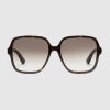 • Shiny dark tortoiseshell acetate temples with bold gold-toned ‘Gucci’ lettering