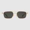 • Shiny yellow gold-toned metal temples with cut-out Gucci logo and crystals