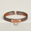The Rivale bracelet is the latest addition to the legendary Collier de Chien collection created by Emile Hermès. The Rivale is the signature of the collection: a double-circle strap adorned with two Médor studs and a ring, a Maison classic. Available in a variety of colours and materials, the Rivale bracelet exudes timeless elegance.