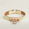 The Rivale bracelet is the latest addition to the legendary Collier de Chien collection created by Emile Hermès. The Rivale is the signature of the collection: a double-circle strap adorned with two Médor studs and a ring, a Maison classic. Available in a variety of colours and materials, the Rivale bracelet exudes timeless elegance.