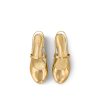 This edition of the Romy slingback pump comes in mirror-effect calf leather for an elegant and eye-catching look. This timeless style has a rounded toe and low block heel for effortless wear both day and night. The slender strap embellished with an LV Twist accessory offers a refined finishing touch.