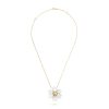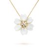 Rose de Noël clip pendant, small model, 18K yellow gold, white mother-of-pearl, round diamonds; diamond quality DEF, IF to VVS. STONE
