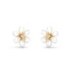 Rose de Noël earrings, mini model, 18K yellow gold, white mother-of-pearl, round diamonds; diamond quality DEF, IF to VVS. STONE