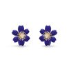 Rose de Noël earrings, mini model, 18K yellow gold, lapis lazuli, round diamonds; diamond quality DEF, IF to VVS.