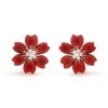 Rose de Noël earrings, small model, 18K rose gold, carnelian, round diamonds; diamond quality DEF, IF to VVS. STONE