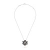 Rose de Noël pendant, mini model, rhodium plated 18K white gold, gray mother-of-pearl, round diamonds; diamond quality DEF, IF to VVS.The pendant is attached to the necklace’s chain