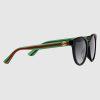 Crafted from acetate, these round sunglasses are characterized by a shiny black front and Web striped enamel temples, while the Interlocking G appears as a logo detail. Each season, House codes and symbols are reimagined and reintroduced in creative new ways.