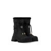 The Ruby flat half boot is ready for winter in a combination of rubber-effect calf leather and Monogram nylon, with a warm shearling lining. This water-repellent, insulated model is complemented by technical details, including wraparound laces with a stopper. It comes on a chunky rubber outsole with distinctive vertical ridges and the Louis Vuitton signature.