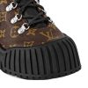 The Ruby flat ranger combines Louis Vuitton’s iconic Monogram canvas with a tongue and collar in smooth calf leather. This versatile ankle boot balances masculine and feminine codes for a fashion-forward look. It is finished with technical, bicolor laces and a chunky yet lightweight rubber outsole, which adds extra height.