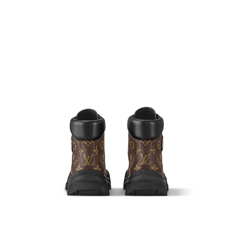 The Ruby flat ranger combines Louis Vuitton’s iconic Monogram canvas with a tongue and collar in smooth calf leather. This versatile ankle boot balances masculine and feminine codes for a fashion-forward look. It is finished with technical, bicolor laces and a chunky yet lightweight rubber outsole, which adds extra height.
