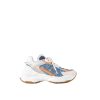 The Run 55 sneaker combines technical materials with two iconic Louis Vuitton signatures: Monogram denim and natural calf leather. This city sneaker has a design inspired by running shoes and features a lifted rubber outsole for optimum bounce and comfort. It is signed with an LV Circle on the tongue and the LV Initials on the front.