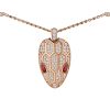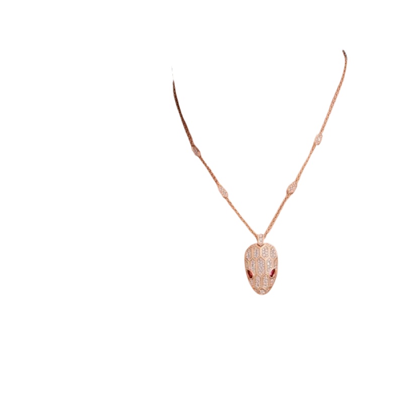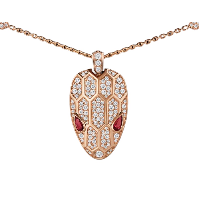 Inspired by the metamorphosis of the mysterious snake that sheds its skin to transform and regain its strength, the iconic Serpenti collection has been a fitting symbol of endless change since 1948. The Serpenti 18K rose gold pendant necklace, meticulously inlaid with sparkling pavé diamonds and red tourmaline eyes, cleverly combines superior craftsmanship with an extraordinary wearing experience, showing an irresistible charm and timeless beauty. A source of strength and confidence, always advancing with the times.