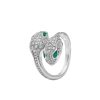 Inspired by the metamorphosis of the mythical snake, which sheds its skin to transform and regain its strength, the iconic Serpenti collection has been a fitting symbol of endless change since 1948. The Serpenti ring in white 18K gold, carefully inlaid with sparkling pavé diamonds and emerald snake eyes, cleverly combines superior craftsmanship with an extraordinary wearing experience, showing an irresistible charm and timeless beauty. As an inexhaustible source of strength and confidence, it always keeps pace with the times.