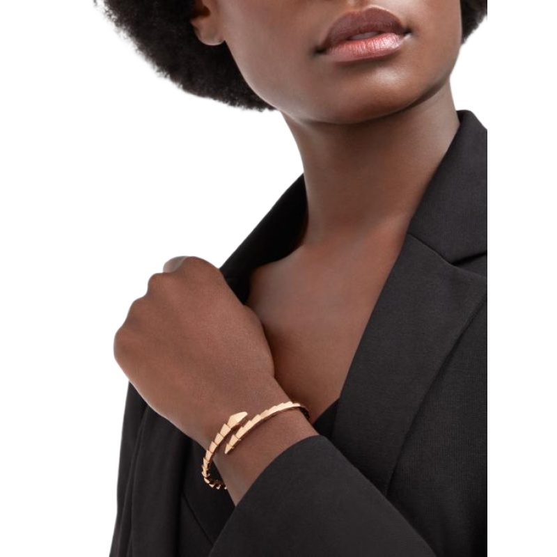The Serpenti Viper 18K rose gold bracelet cleverly combines pure aesthetics, wraparound shapes and charming charm in an iconic style, and simply interprets the endless transformation and evolution of Bvlgari’s classic works. This charming jewelry piece embodies the powerful characteristics of the mysterious snake’s continuous transformation, inspiring people to actively seek change and regard it as an inexhaustible source of strength and confidence. It is suitable for mixing and matching at will, providing a variety of styling options, showing the flexible and versatile style of the series.