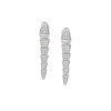Serpenti Viper earrings in 18K white gold, fully pavé-set with diamonds, combine pure aesthetics, circumferential shapes and allure in a signature style that condenses the endless transformation of Bvlgari’s iconic creations. This glamorous jewellery piece captures the powerful qualities of the mysterious snake’s ever-changing transformation, inspiring people to actively seek change as an inexhaustible source of strength and confidence. Perfect for mixing and matching, it offers a variety of styling options, showcasing the versatile and versatile style of the collection.