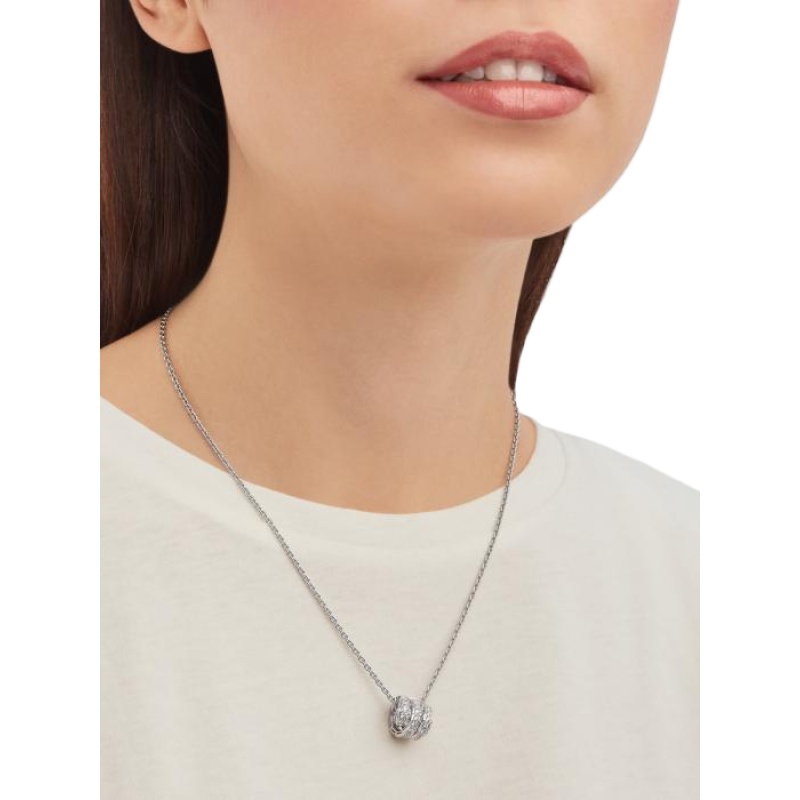 The Serpenti Viper necklace in 18K white gold, fully pavé-set with diamonds, is a signature style that combines pure beauty, circumferential shapes and allure, a simple and concise interpretation of the endless transformation and evolution of Bulgari’s classic creations. This glamorous jewelry piece embodies the powerful characteristics of the mysterious snake’s constant transformation, inspiring people to actively seek change and regard it as an inexhaustible source of strength and confidence. It is suitable for mixing and matching at will, providing a variety of styling options, showing the flexible and versatile style of the series.