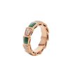 Reminiscent of a snake coiling before it strikes, this ring sensually wraps around the finger, letting you indulge in its seductive curves. This sophisticated and stylish piece of jewellery cleverly combines the deadly and seductive nature of scales with the sinuousness of a snake, and is full of temptation, sensuality and seduction. Light and shadow, intellect and desire, the two sides of the snake's nature are revealed. Serpenti Viper series 18K rose gold ring set with malachite and decorated with pavé diamonds.