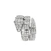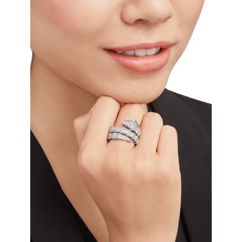 The Serpenti Viper ring in 18K white gold, fully pavé-set with diamonds, is a signature style that cleverly combines pure aesthetics, circumferential shapes and charming charm, and simply interprets the endless transformation and evolution of Bvlgari’s classic works. This charming jewelry piece embodies the powerful characteristics of the mysterious snake’s continuous transformation, inspiring people to actively seek change and regard it as an inexhaustible source of strength and confidence. It is suitable for mixing and matching at will, providing a variety of styling options, showing the flexible and versatile style of the series.