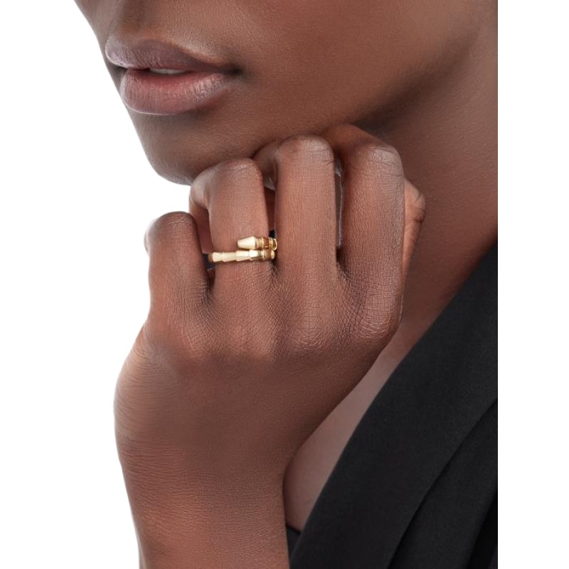 The Serpenti Viper 18K yellow gold ring combines pure aesthetics, circumferential shapes and charming charm in an iconic style, which succinctly interprets the endless transformation and evolution of Bvlgari's classic works. This charming jewelry piece embodies the powerful characteristics of the mysterious snake's continuous transformation, inspiring people to actively seek change and regard it as an inexhaustible source of strength and confidence. It is suitable for mixing and matching at will, providing a variety of styling options, showing the flexible and versatile style of the series.
